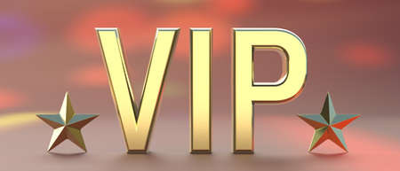 VIP club member concept. Golden text VIP and stars on blur colorfoul background. Gambling gold club membership, banner. 3d illustration