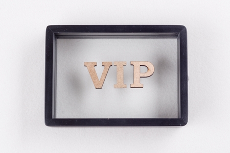 VIP is written in abstract letters in a black frame. White background