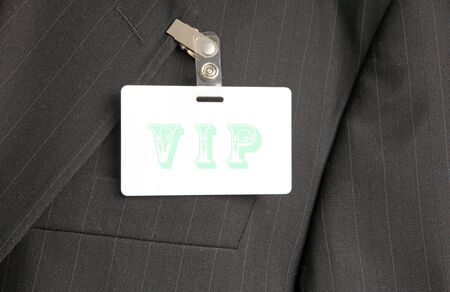close up of black suit with VIP id card