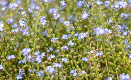 Vibrant, colorful, and beautiful blue wildflowers growing abundantly in nature scenery