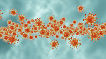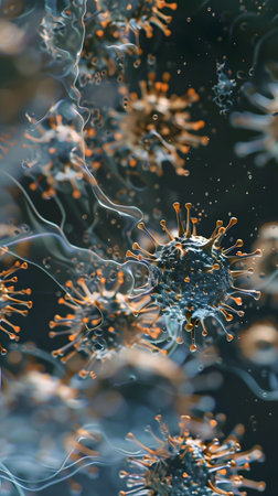Microscopic view of virus cells. 3D medical illustration