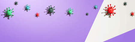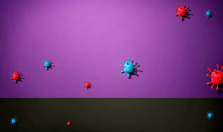 close-up coronavirus type covid-19, h1n1, bird flu or swine flu background. 3d rendering of representation of virus as microbiological microscopic background. Blue red gradient colors
