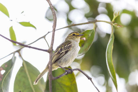 White-eyed vireo bird Vireo griseus with yellow sides perches on a tree branch in Naples, Florida