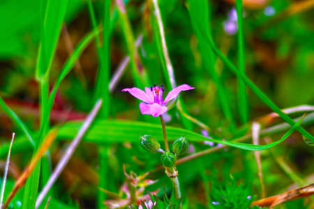 Miquel's mazus flowers. Phrymaceae perennial plants. From spring to early summer, purple flowers with hair grow in the central tan area. It has the property of spreading with stolons.