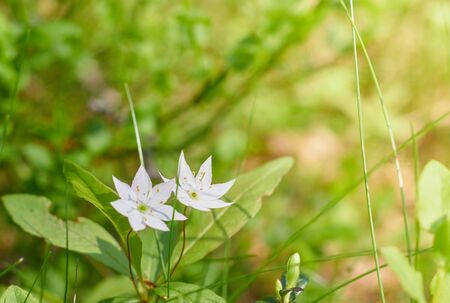 Ornithogalum umbellatum grass lily in bloom, small ornamental and wild plant