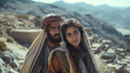 Portrait of a young couple of Muslims in the mountains