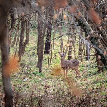 Whitetail female deer in the woods in Central Kentucky in fall