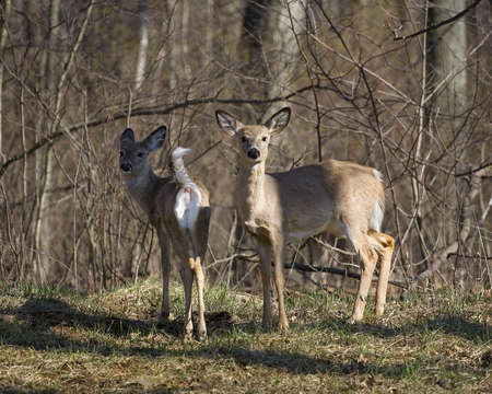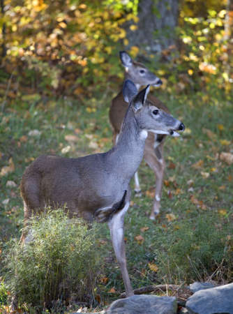 a pair of whitetail does in the autumn