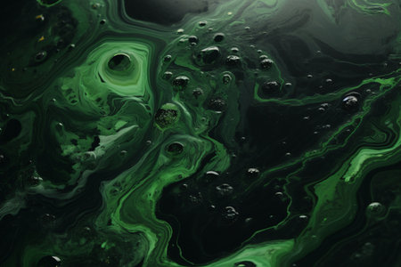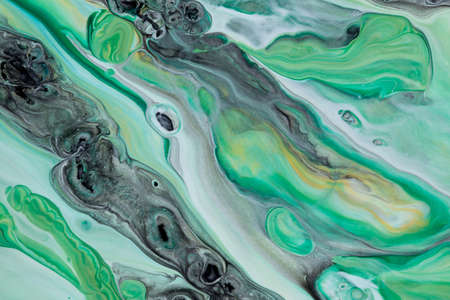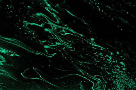 Free flowing green acrylic paint. Random Waves and Curls. Abstract marble background or texture.