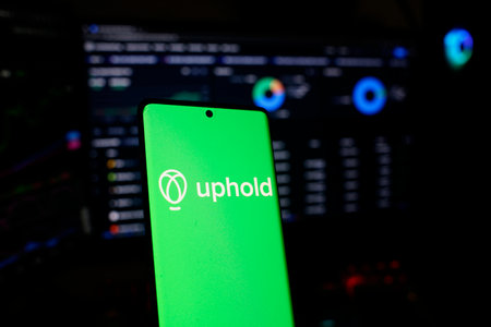 Dhaka, Bangladesh 04 Jan 2025: Uphold Mobile Crypto Bitcoin Buying Investing App Fintech in Play Store on Screen.