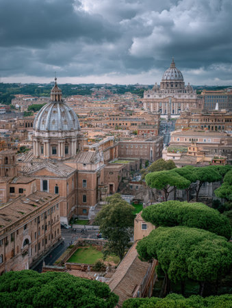 Vatican City unfolds from Castel SantAngelo, showcasing stunning architecture amidst an overcast sky, highlighting the grandeur of this historical site.