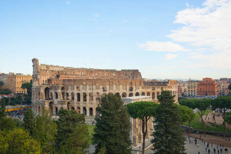 View from the Palatine hill at the Colosseum. Old town, Rome, Italy. Aerial view.