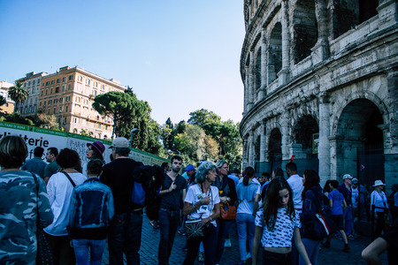 Rome Italy October 18, 2019 View of unknowns people walking in the streets of Rome near the Coliseum in the afternoon