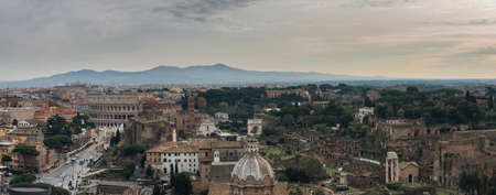 Rome skyline at the city center with panoramic view of famous landmark of Ancient Rome architecture, Italian culture and monuments. Historical Rome is the famous travel destination of Italy.