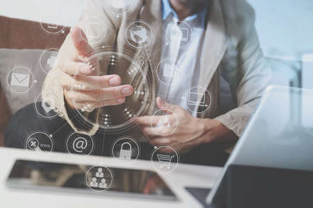 Businessmen use Internet connection technology and digital marketing, finance and banking Digital connection technology