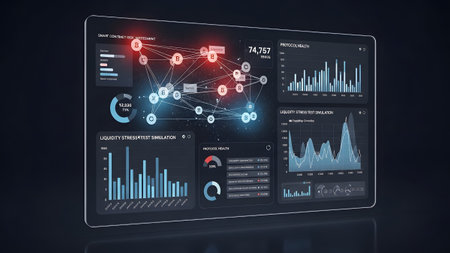 Advanced data visualization dashboard displaying network analysis and business intelligence metrics