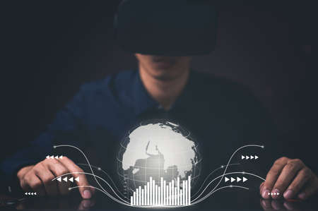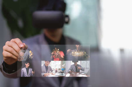 Businessmen are using virtual reality glasses in the virtual metaverse world.