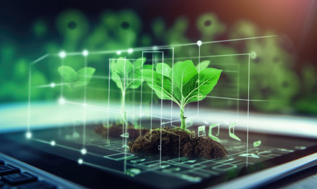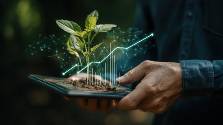 A visual representation of modern business strategy, where sustainable, organic growth is measured and analyzed with digital technology.