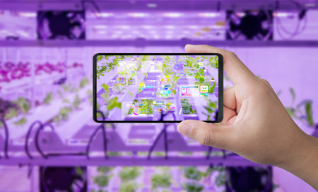 smart farming. Computer scientific approach in vegetable growing. Modern technologies for growing eco products. Design for presentation, business cards, covers. Generative AI