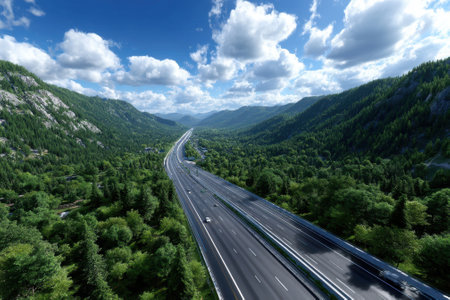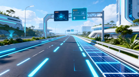 Futuristic road transportation technology with digital data transfer graphic