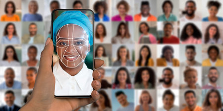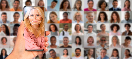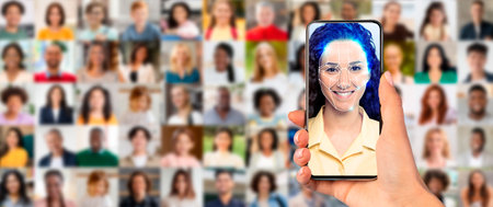 Modern face recognition technology displayed on smartphone screen