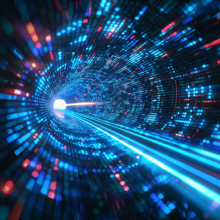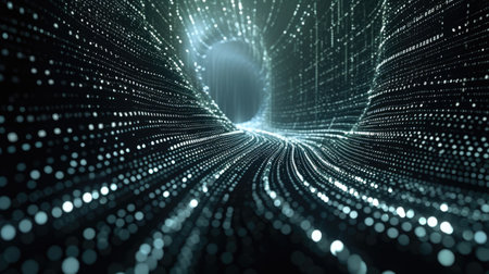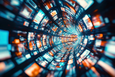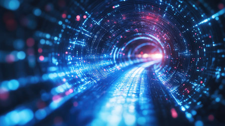 Abstract digital tunnel with glowing data streams, perfect for tech process visuals.