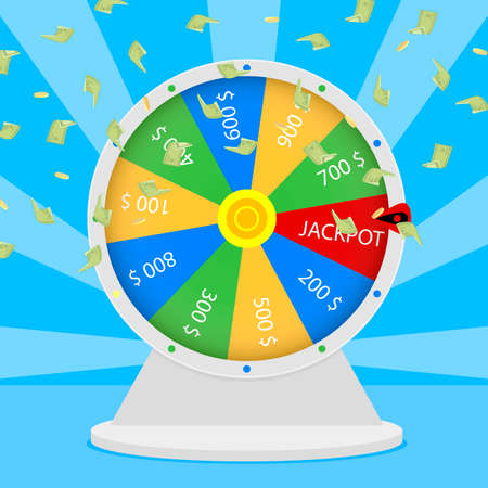 Win jackpot in wheel. Lucky game gambling, prize win in roulette, casino jackpot entertainment, vector lucky spin and illustration jackpot prize