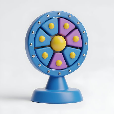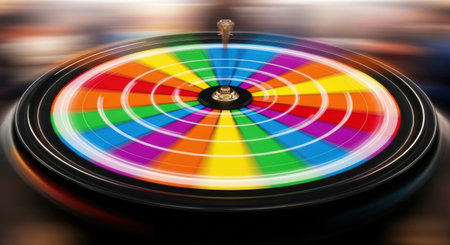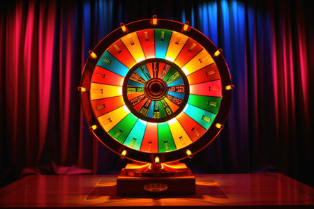 A brightly colored wheel spins on a sturdy base, inviting excitement and anticipation. Each vibrant segment represents chance and opportunities waiting to be explored.
