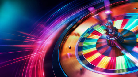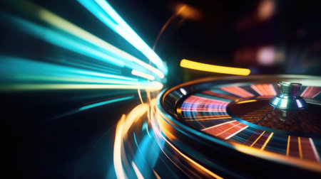 Blurry motion background and spinning roulette. Perfect for casino themes. Vibrant colors and dynamic movement. AI generated.