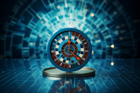 Roulette wheel with blue background and lights, casino photo with Generative AI