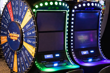 Casino gambling blackjack and slot machines waiting for gamblers and tourist to spend money.