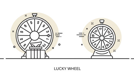 Vector illustration of flat line design concept of luck wheel and gift box.