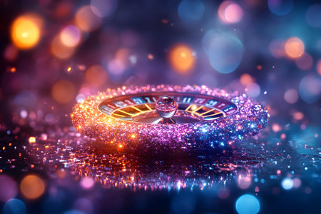 Casino Games With Colorful Bokeh PArty Lights Roulette wheel
