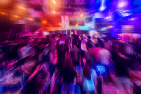 Crowd of people partying raving music concert festival night club clubbing fun dj techno electronic music dancing dance entertainment excited young pop rock nightlife entertainment event spotlights
