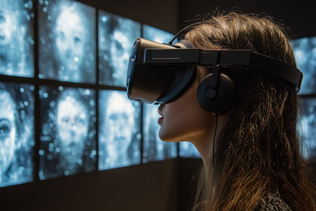 Exploring virtual reality technology with futuristic visuals and immersive experiences