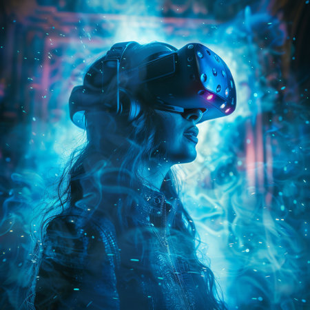 Exploring virtual reality technology with futuristic visuals and immersive experiences