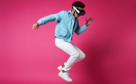 man technology pink headset modern jump innovation reality vr virtual digital. Generative AI.