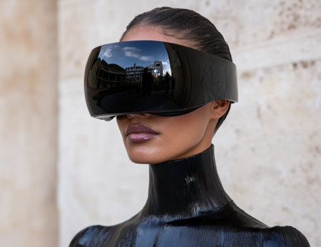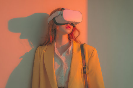Fashionable Portrait of a Woman Wearing a VR Headset