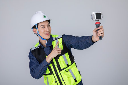 millennials and gen z, korean asian young man, site staff filming
