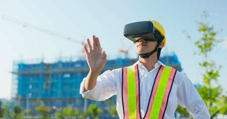 asian male architect works on construction site by virtual reality