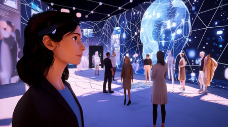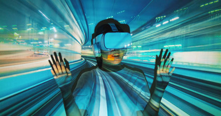 Exploring virtual reality technology with futuristic visuals and immersive experiences