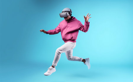 man technology pink headset modern jump innovation reality vr virtual digital. Generative AI.