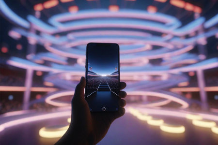 Reflection of light effects on mobile phone at a concert (Gadgets, new device, updates - concept)