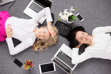 Two businesswomen collaborating at a modern workspace, exchanging ideas and technology during a productive afternoon meeting