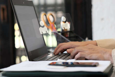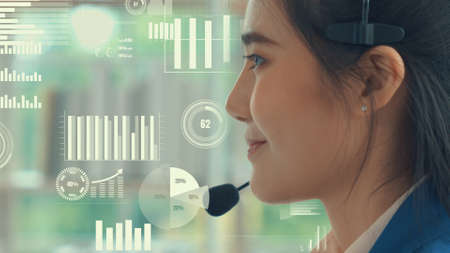 Customer support call center provide data with envisional graphic . Business and communication technology concept .