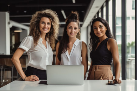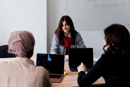 Portrait of multi ethnic business woman standing together at office, Multi ethnic business people at startup.