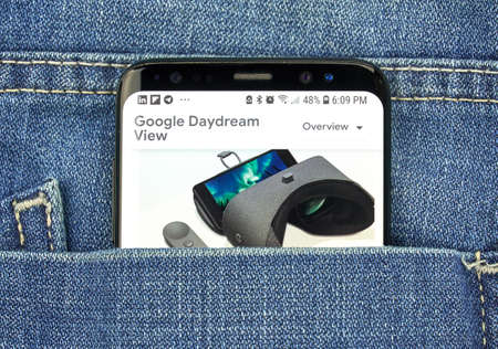 MONTREAL, CANADA - OCTOBER 4, 2018: Google Daydream view on s8 screen. Daydream is a VR platform. Google is an American technology company which provides a variety of internet services