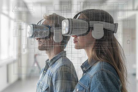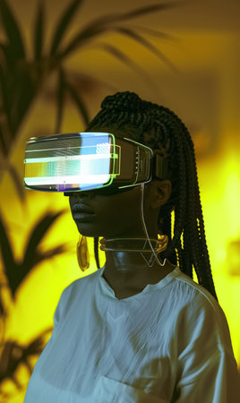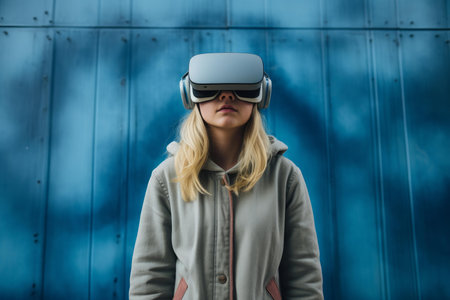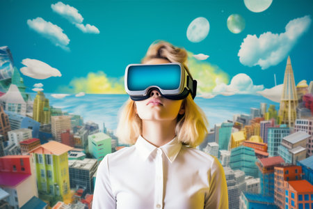 virtual reality digital installation with vr headset double exposure, created with generative ai