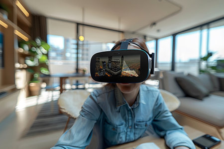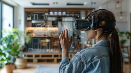 Engineer wearing vr headset for interior inspiration, immersive decor simulations