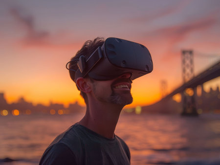 Man in VR glasses exploring cyberspace